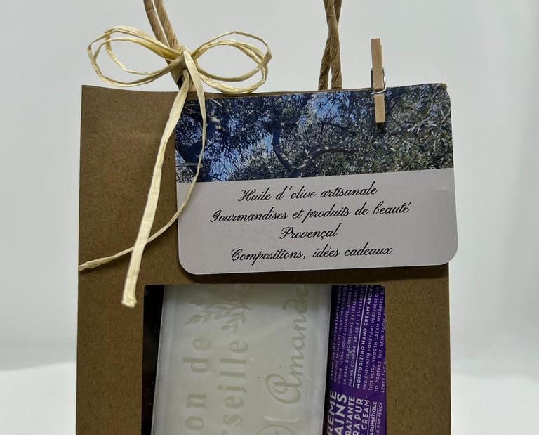 Offrez une composition personnalisée avec les produits de Soleil Provence, un site qui célèbre les saveurs authentiques du Sud de la France. Que ce soit pour un cadeau spécial ou pour se faire plaisir, nos assortiments mettent en avant des produits de qualité issus des traditions méditerranéennes. Imaginez des huiles d'olive, des savons, des biscuits et gourmandises, soigneusement sélectionnés pour créer une expérience gustative unique. Faites plaisir à vos proches en leur offrant un bouquet de saveurs qui les transportera instantanément sous le soleil du sud. Avec Soleil Provence, chaque moment devient un voyage sensoriel inoubliable.